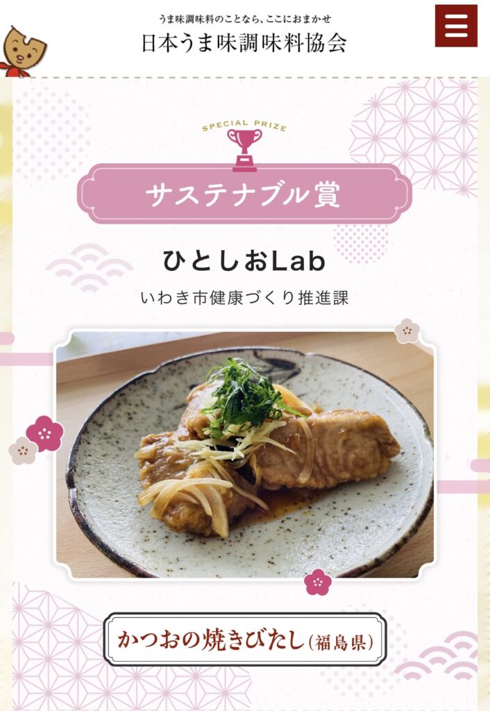 このたび、ひとしおLabは、「第10回うま味調味料活用!おいしく減塩郷土料理コンテスト2025」に応募し、“サステナブル賞”をいただきました。