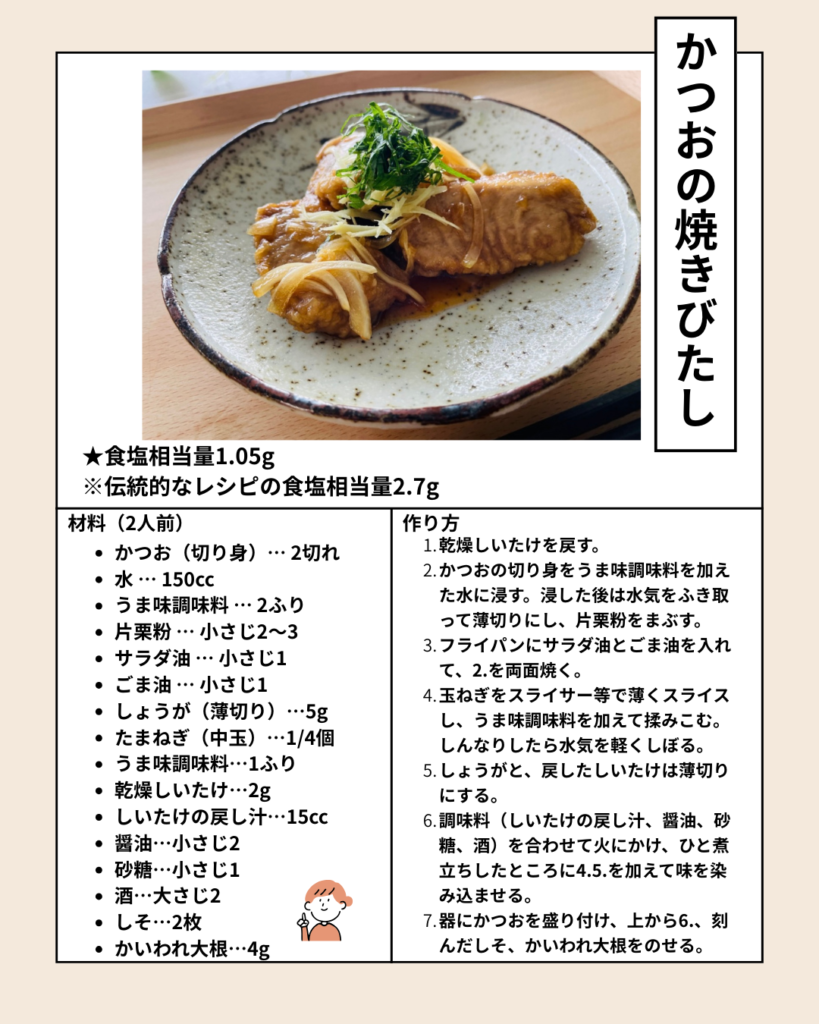 その成り立ちから高塩分のものも多い郷土料理を、「うま味(グルタミン酸)」を活用することでおいしく減塩し、「伝統的な食文化」の次世代への継承に貢献することを目指して実施されています。(主催:日本うま味調味料協会)