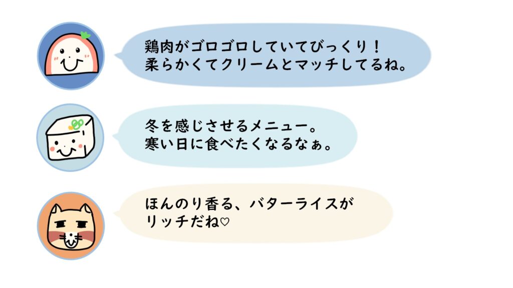 今回は、このホワイトソースに、高品質なたんぱく質を含む鶏肉、腸内環境改善を助けるきのこ類が加えられ、栄養バランスに優れた内容となっています。やさしい味わいで心を癒しながら、健康志向の毎日を支える一品としておすすめです。