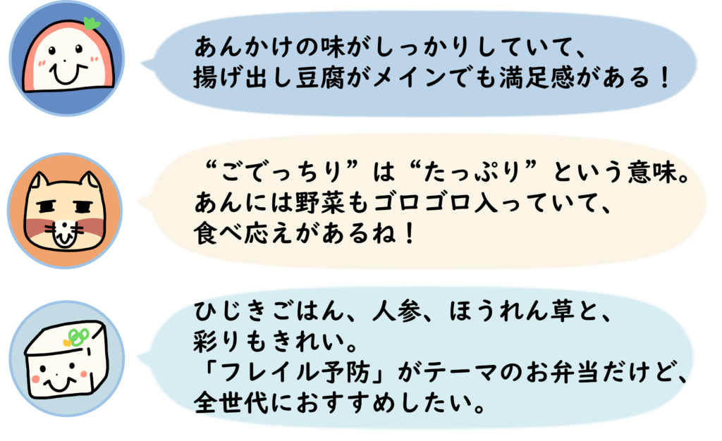 先月に引き続き、今月も塩分を控えながらも美味しく食べられ、さらに「フレイル予防」にもつながるお弁当の新作3品が期間限定で発売されています。